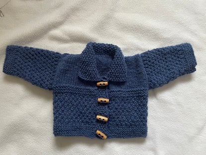 This item plus a selection of other hand-knitted baby wear can be found below.