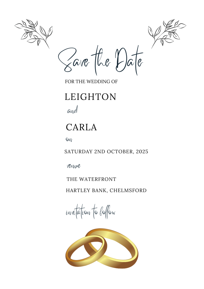 PERSONALISED WEDDING SAVE THE DATE
