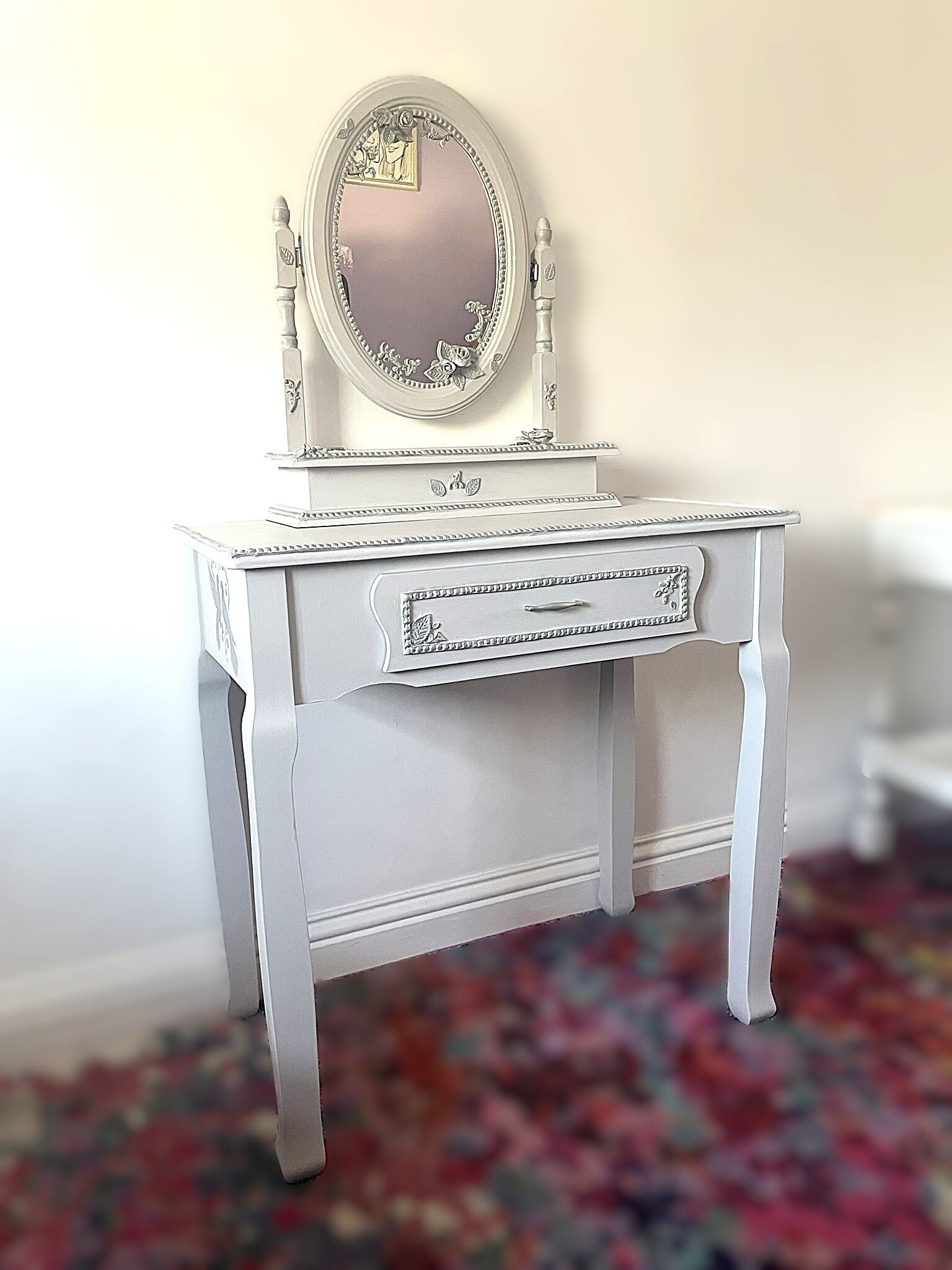 'Aurora' Dressing Table and Mirror set in Dove Grey