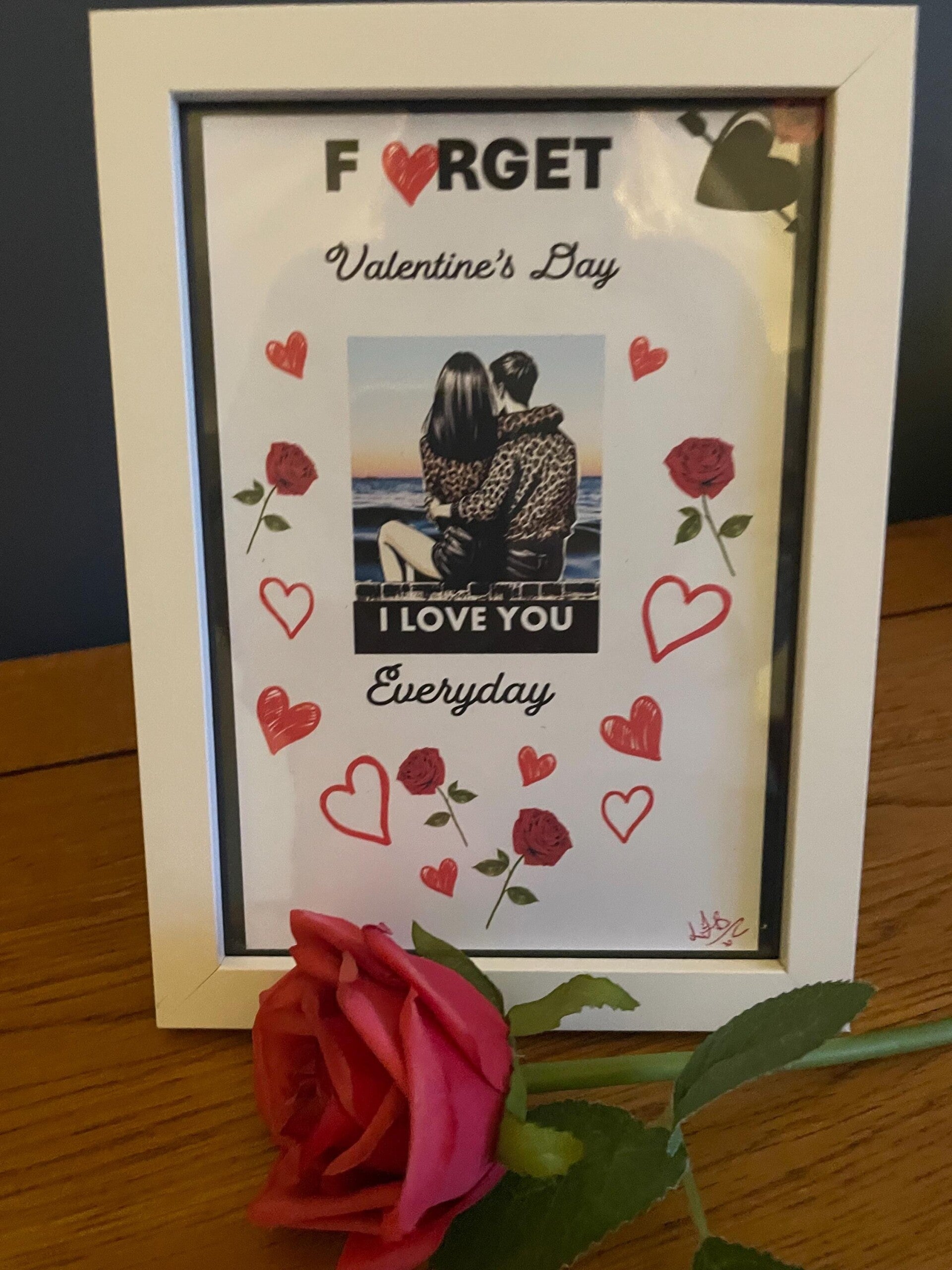 A framed message, surrounded by hearts and roses, which is sure to make their day extra special.